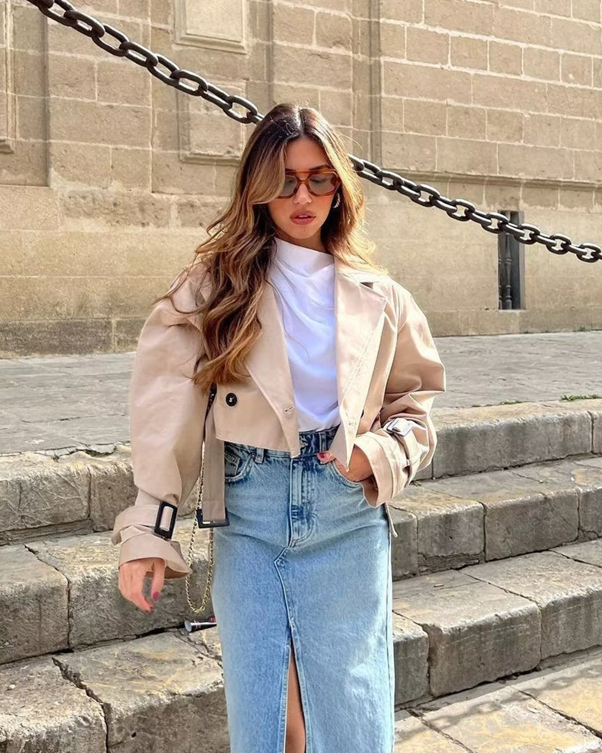 Ayla Cropped Belted Trench Jacket