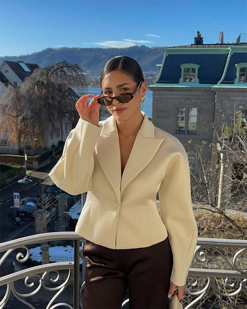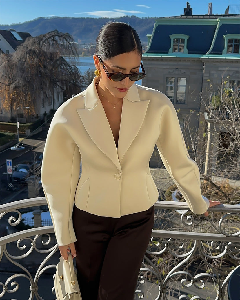 - – V-neckline and 3/4 sleeves for an elegant shape