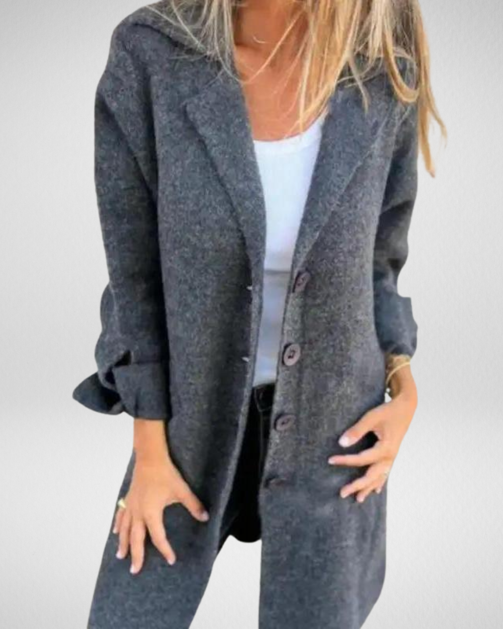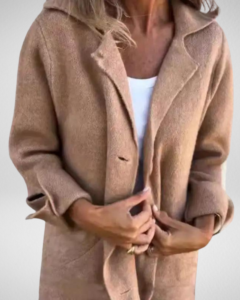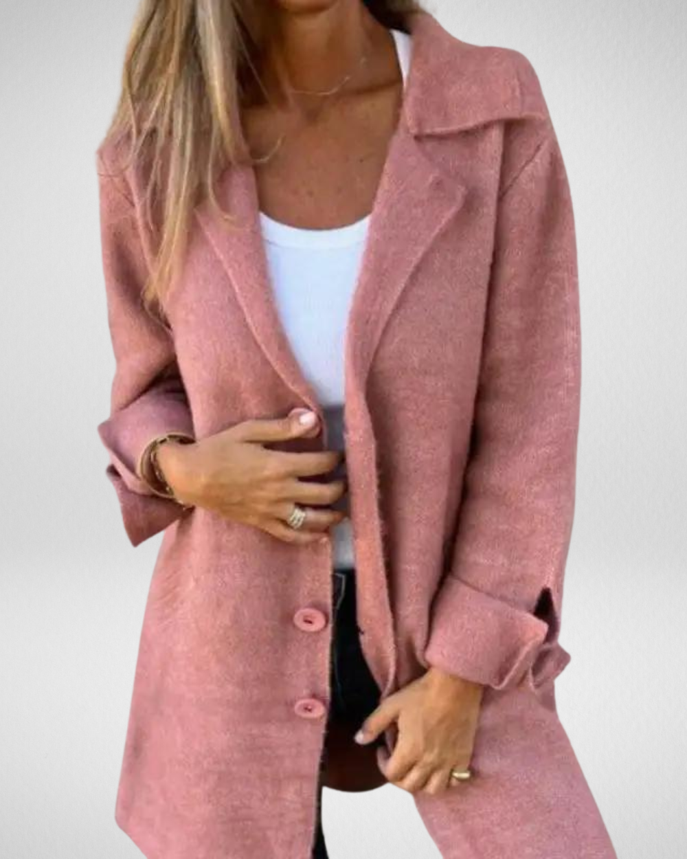Women’s Wool-Blend Coat – Relaxed Fit – Button Closure – Classic Lapel